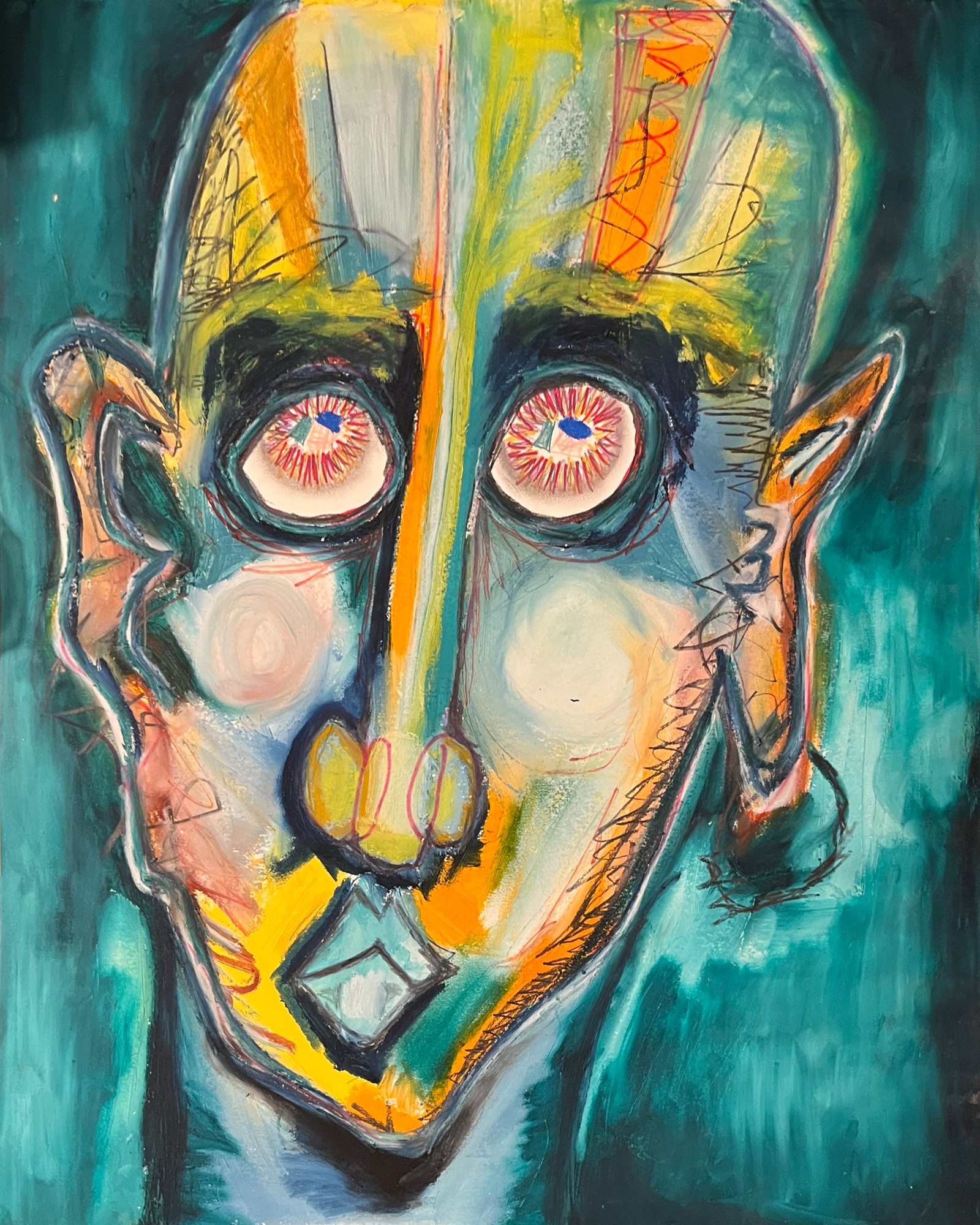 Finger painted with oil paint sticks, graphite, and copic markers on paper. Original AvailablePrints are available upon request. 12x16 in.