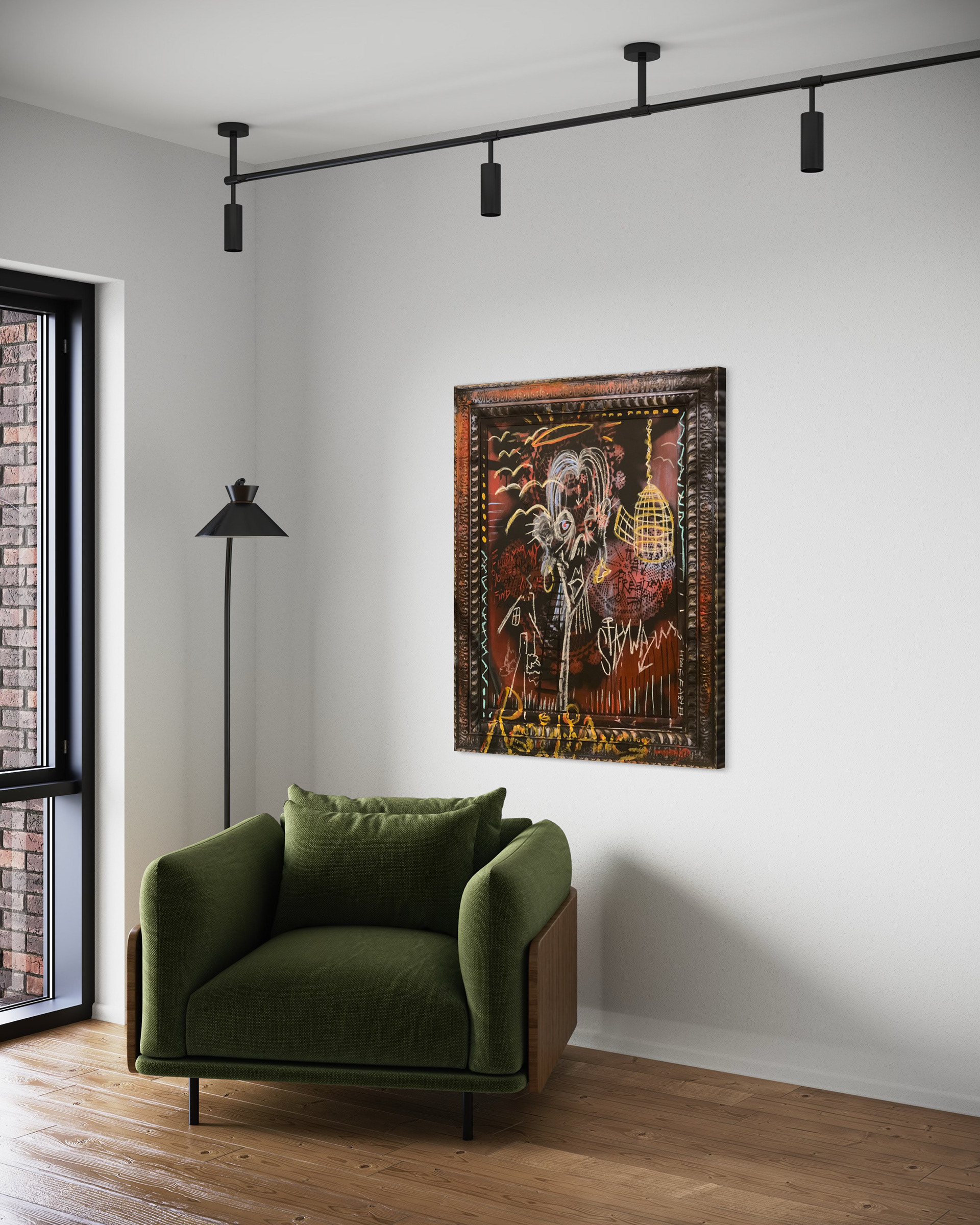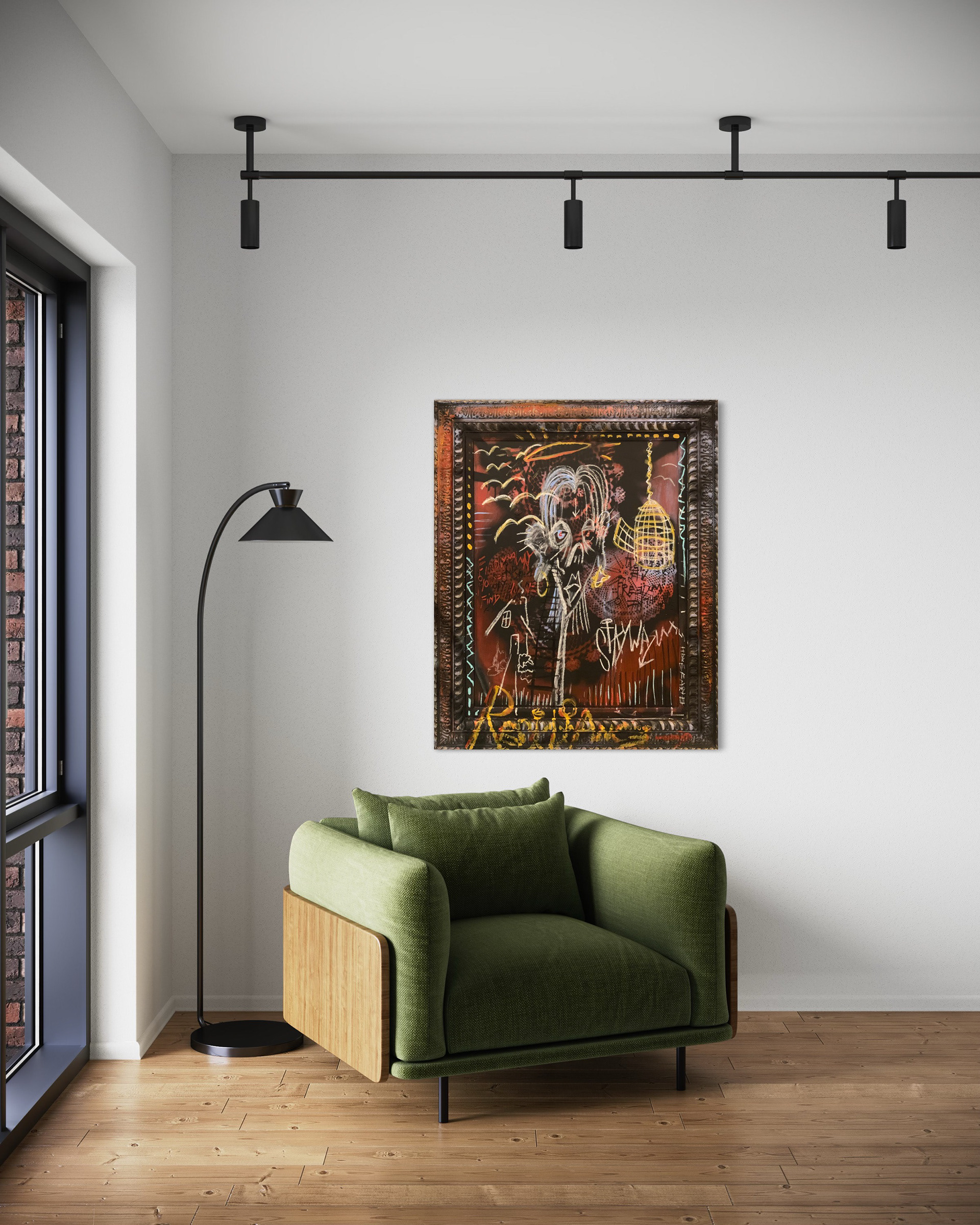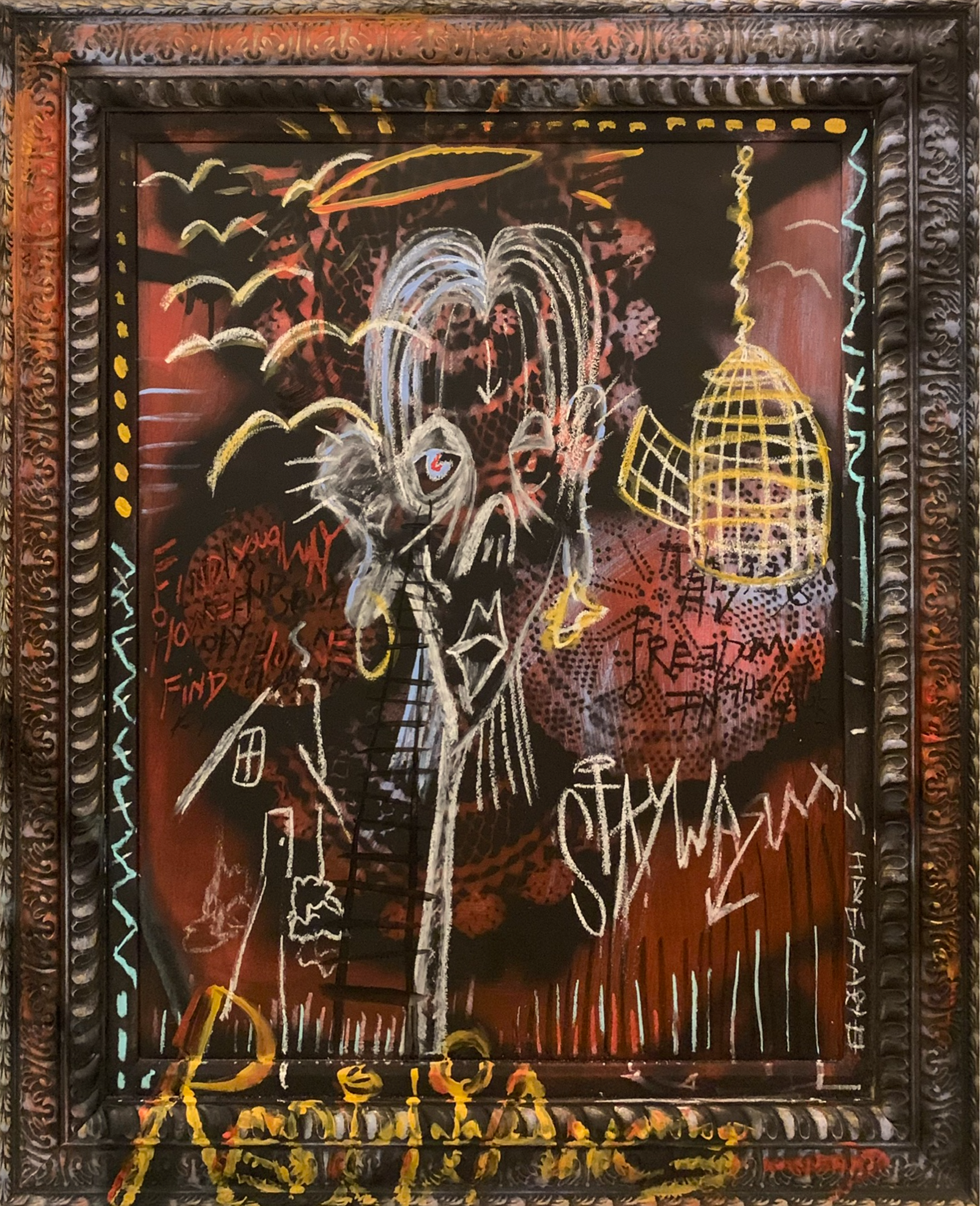 April 14, 2020 1:42. AM. Lake Harding, Georgia. Acrylic, Oil pastel, Chalk, repurposed pre-framed canvas. 48x39in